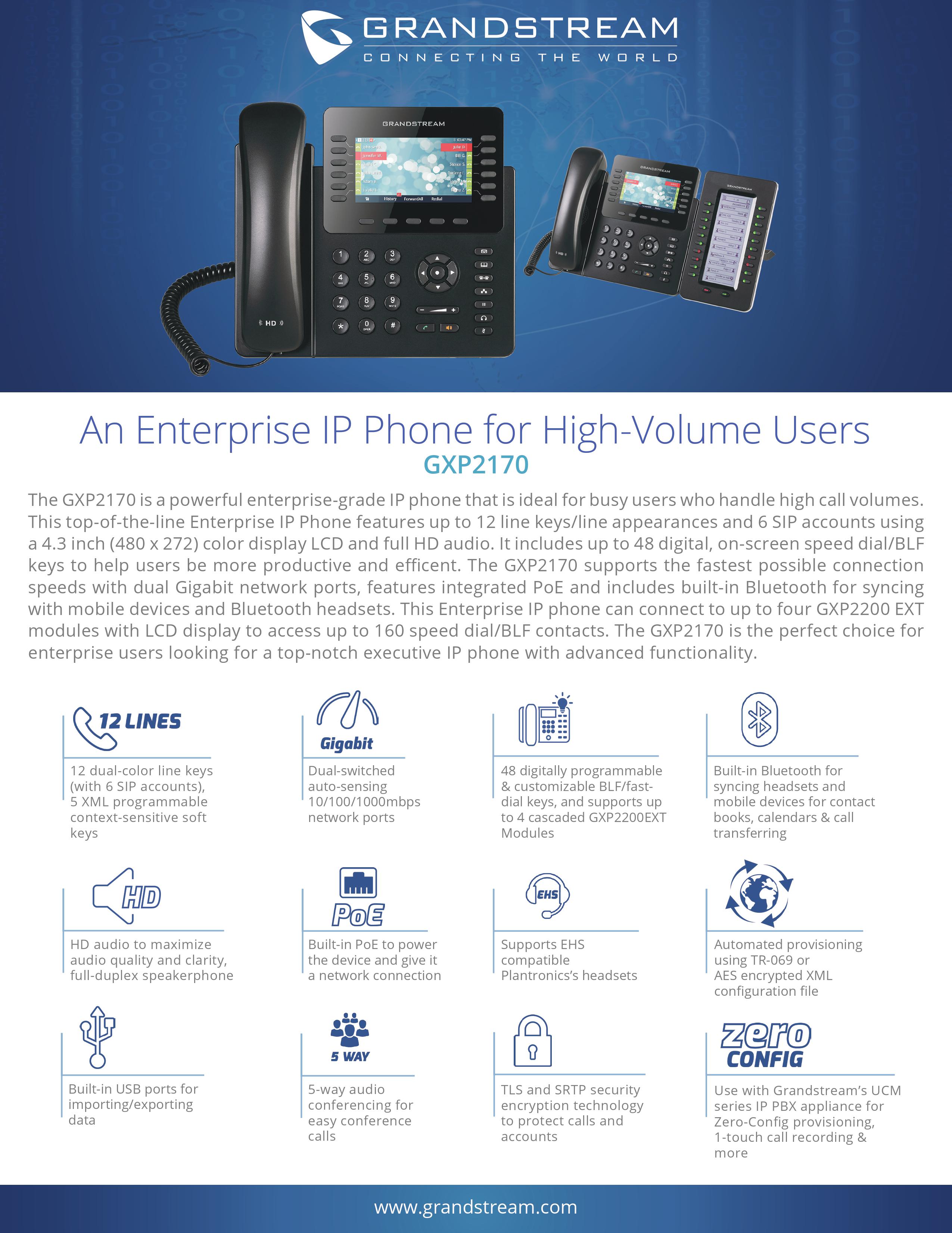Bring heavy communications under control by utilizing the GXP2170’s high-line access, BLF/speed-dial support and other control focused features. Our most powerful High-End IP Phone, designed for the high-call volume user who requires a suite of call control and efficiency focused features.
